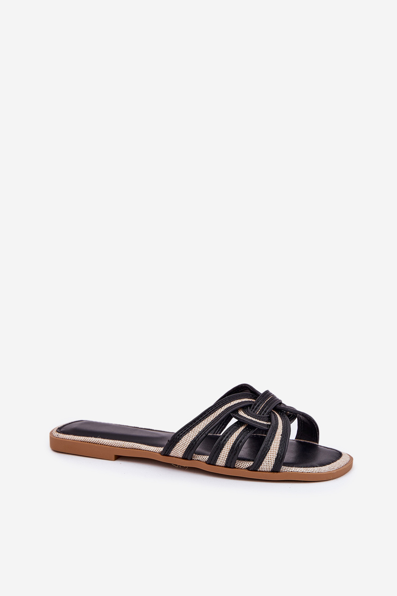 Womens Flat Sandals With Intertwining Straps Black Acimine
