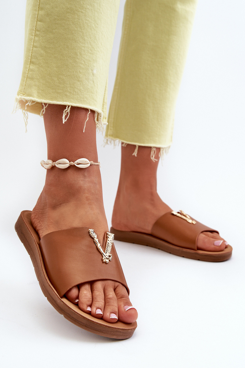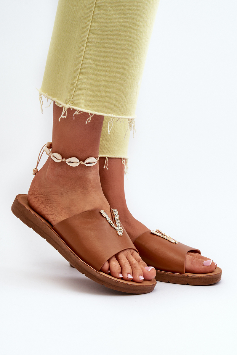 Women's Flat Sole Sandals with Eco Leather Decoration Brown Makia