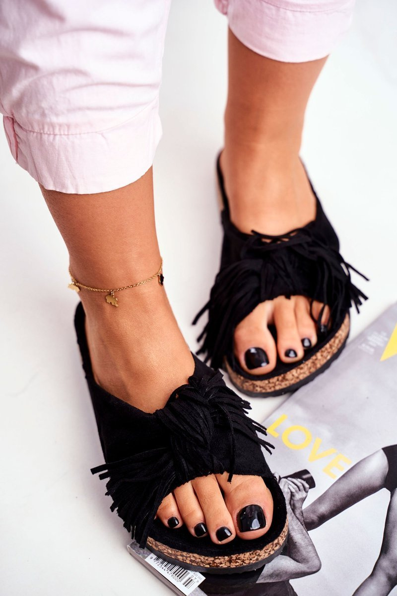 Women's flip flops perfect for summer! They will fit both dresses and trousers. The soft and profiled insole provides incredible convenience and comfort. The flip-flops have beautiful decoration in the form of a tied bow with hanging fringes. They come in several wonderful colors. You must have them, check all the colors!