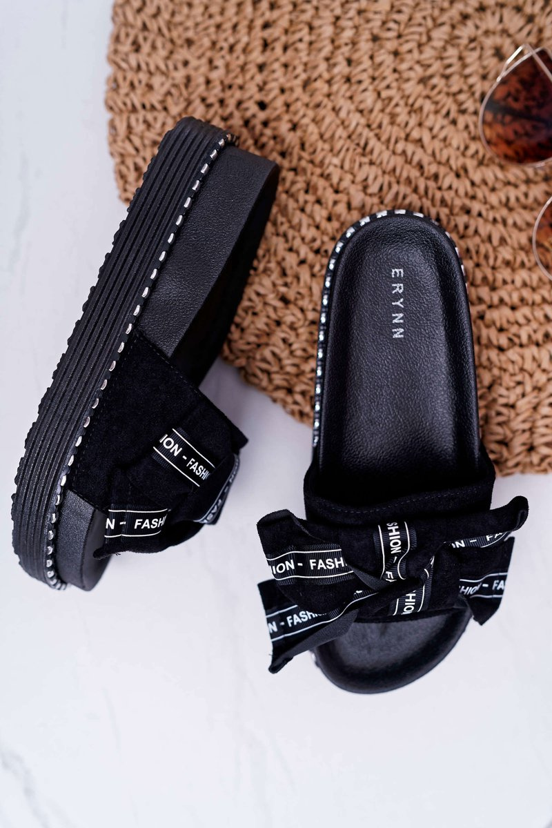 Women's Flip Flops Contoured Insole With Bowtie Black Vrenya