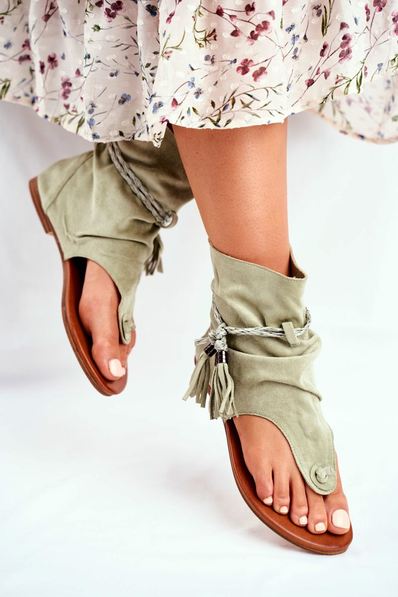 Women's Flip Flops Sandals With Uppers Green SL1011 Madrit