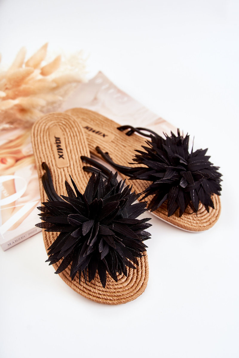 Women's Flip-flops With Fabric Ornament Black Eviana
