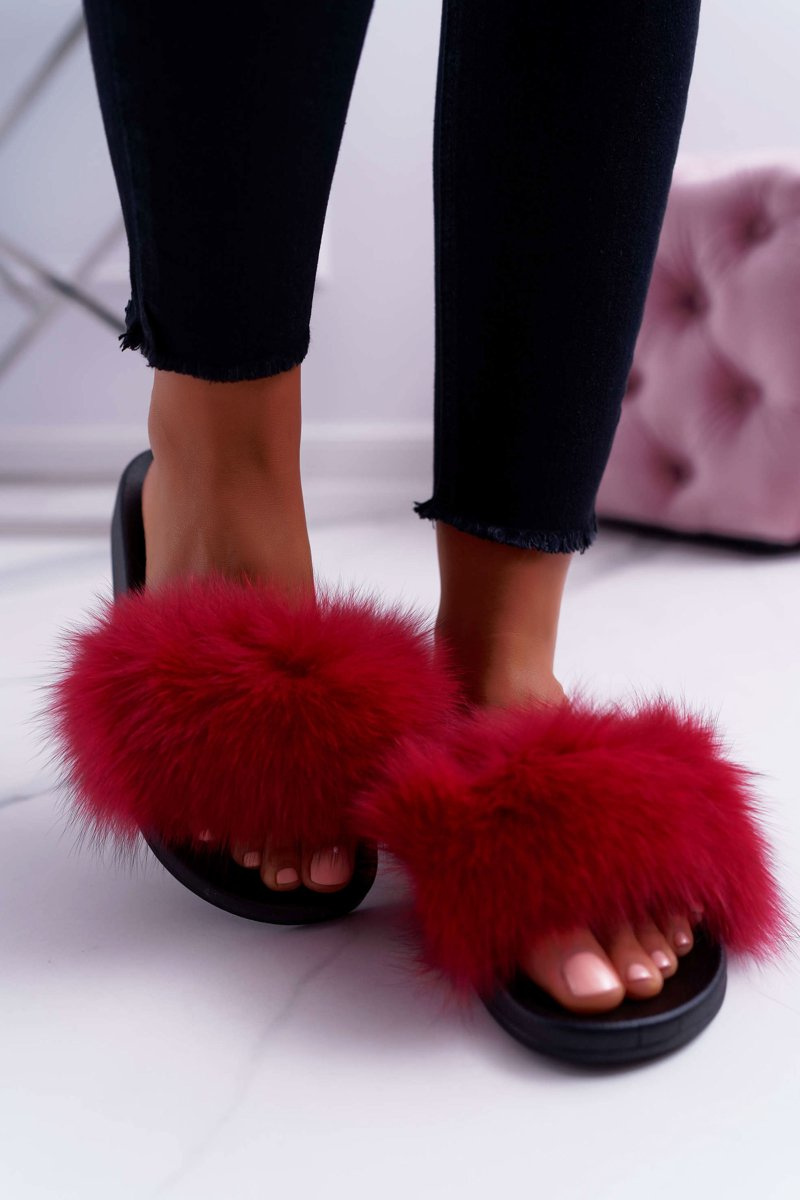 Women's Flip Flops with Natural Fur Red Naturis