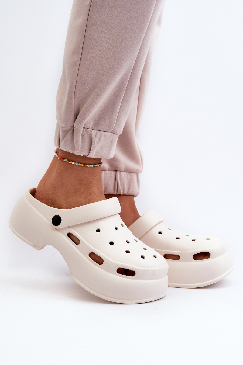 Women's slides made of lightweight, foam material. The adjustable strap provides stability and protection against slipping. The platform ensures comfort during wear. Additional openings in the upper allow for proper airflow, providing comfort even on hot days. When choosing a size, please refer to the size chart.
