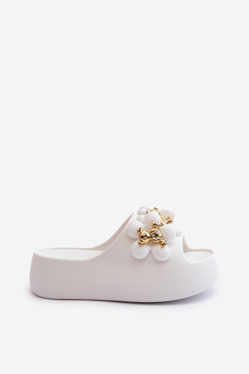 Women's Foam Slides With Decorations On Thick Sole White Bremavia