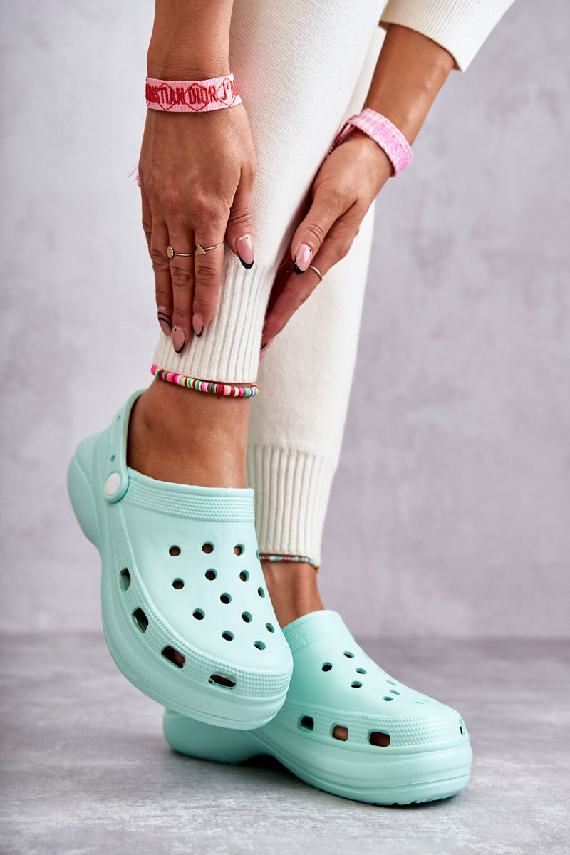 Women's slippers made of high-quality foam material. The insole with insets means that the feet will not be so tired, even after a whole day of use. Movable strap prevents the foot from slipping. The shoes are mounted on a massive heel and platform. The perfect model to work in the garden or use at home instead of slippers. Holes in the upper allow for adequate ventilation of the footwear. When choosing a size, please use the size chart.