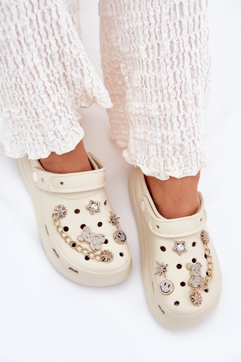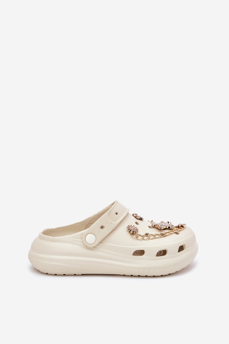Women's foam slippers on a thick sole are a comfortable option for warm days. Wide, closed toes provide comfort, while gold embellishments add a stylish touch. Perfect for everyday outfits, by the pool, or on summer vacations. When choosing a size, please refer to the size chart.
