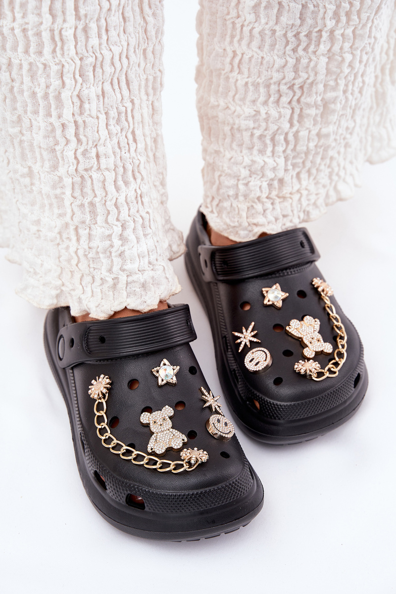 Women's foam slippers on a thick sole are a comfortable option for warm days. Wide, closed toes provide comfort, while gold embellishments add a stylish touch. Perfect for everyday outfits, by the pool, or on summer vacations. When choosing a size, please refer to the size chart.