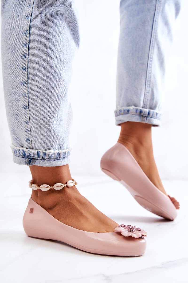 Wonderful, fragrant ballerinas from ZAXY. Made of the highest quality soft, rubber material. Universal ballerinas have a non-slip sole. Decorated with a flower on the front, which gives them an amazing charm. Rounded nose. The comfortable insole will take care of the comfort of your feet. They were made in the HUG TEC technology, thanks to which they are more flexible and soft. These shoes are vegan and hypoallergenic. They are 100% recyclable and do not contain phthalates, i.e. chemical compounds responsible for the elasticity of materials such as rubber or plastic. When choosing a size, please use the size chart.