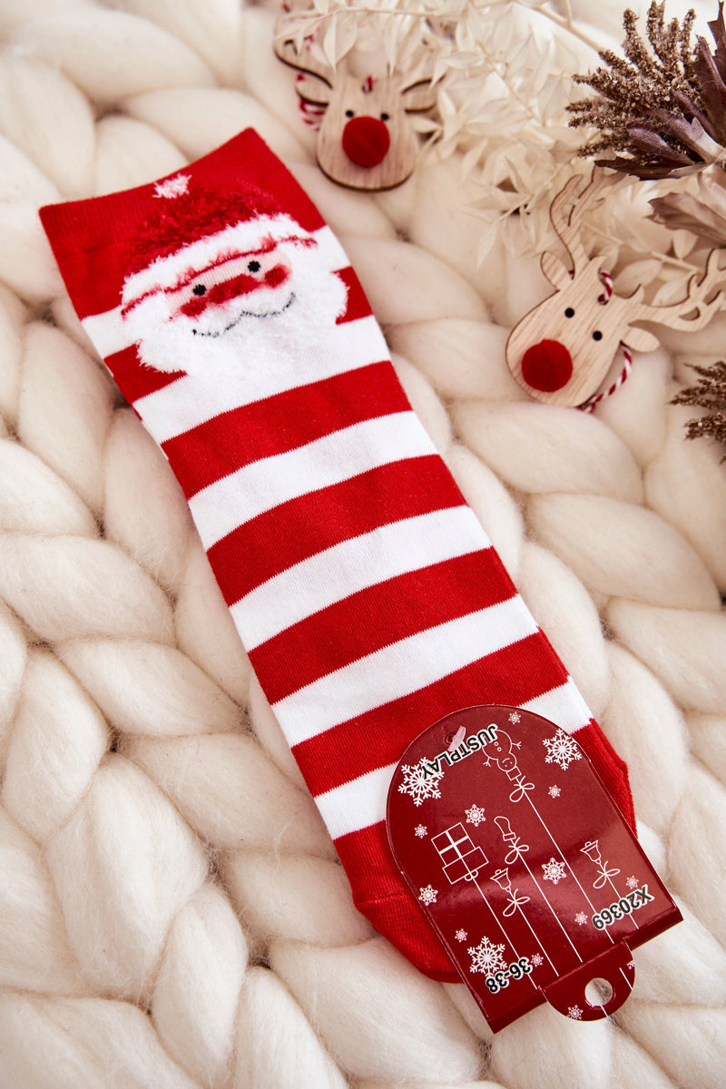 Women's Funny Christmas Socks In stripes with Santa Claus red and white