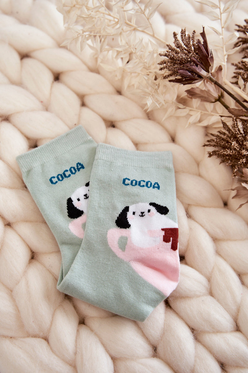 Women's socks are made of cotton material. They have a funny pattern with an animal in a cup. Comfortable model to use. These socks have a welt. The socks are also great for a birthday or name day gift for a loved one. Check also other models of socks!