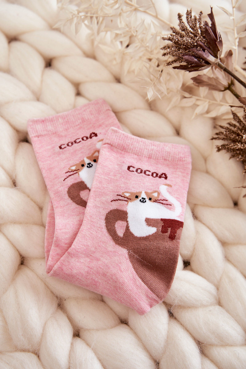 Women's socks are made of cotton material. They have a funny pattern with an animal in a cup. Comfortable model to use. These socks have a welt. The socks are also great for a birthday or name day gift for a loved one. Check also other models of socks!