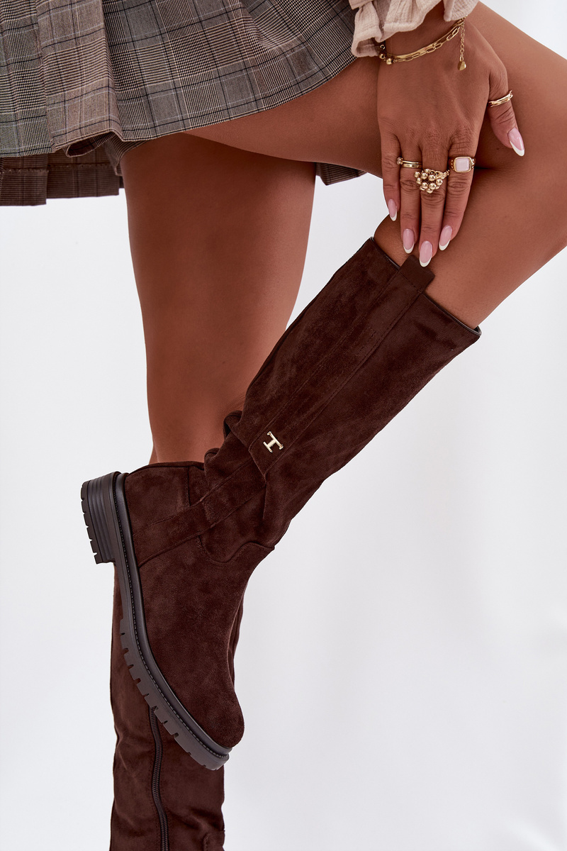 Women's Fur-lined Boots Flat Heel Eco Suede Chocolate Delyssa