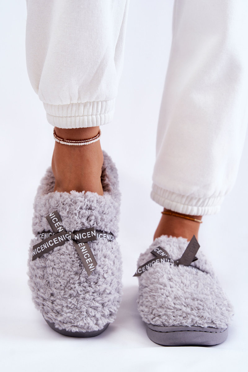 Fashionable women's slippers are made of eco fur both outside and inside. Classic model, slip-on. The slippers were placed on a flat sole made of rubber material. In addition, they were decorated with a bow with inscriptions. This model should be in your wardrobe! When choosing a size, please refer to the size chart.