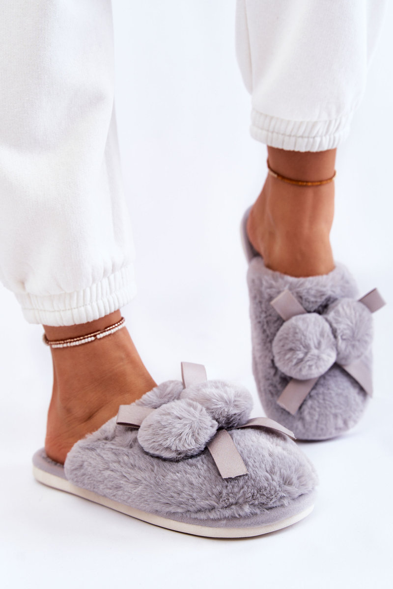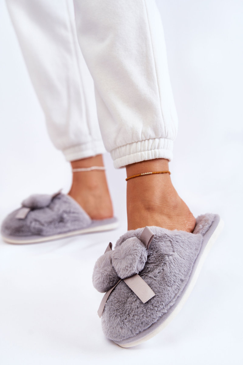 Women's Fur Slippers With Pompoms Grey Castello