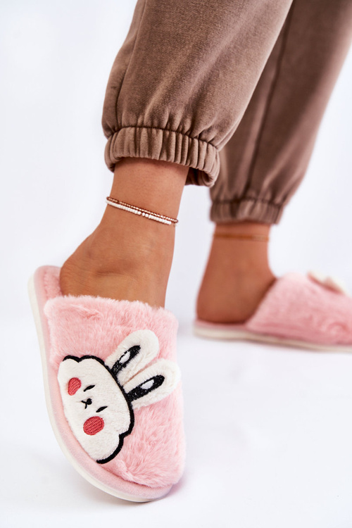 Lovely women's slippers with a bunny motif on the front. This unusual model is made of pleasant to the touch eco fur. Classic, slip-on model. The slippers are mounted on a flexible sole. A soft, insulated insole will provide convenience and comfort during use. You absolutely should have this model in your wardrobe! When choosing a size, please use the size chart.