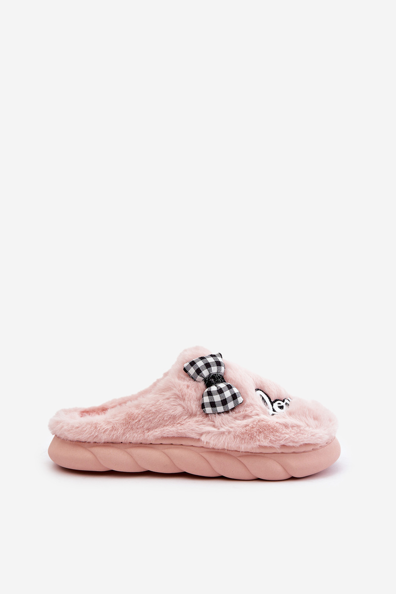 Women's Furry Slippers With Patches And Bow Pink Linnorelia