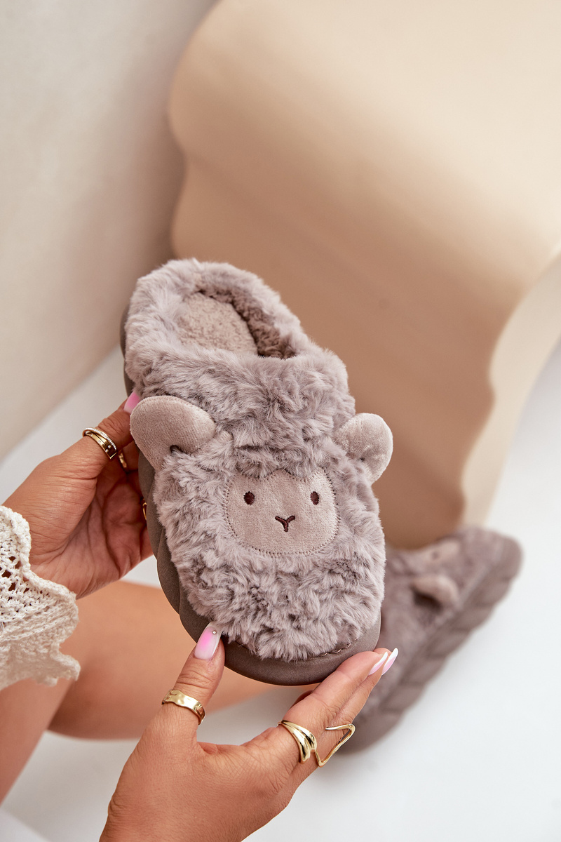 Women's Furry Slippers With Sheep Motif Dark Beige Phaeia
