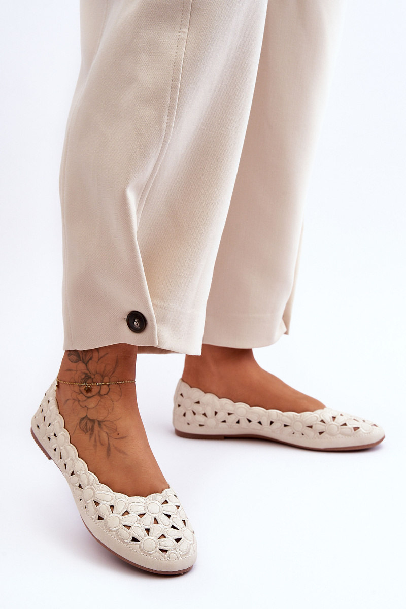 Women's ballerinas will be great for the spring-summer season! This model is additionally perforated in a beautiful flower pattern. The ballerinas have been made of eco leather. Set on a flat heel. The soft insole ensures comfortable use of the shoe. You must have them! When choosing a size, please refer to the size chart.