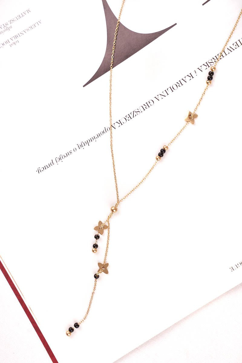 Women's Gold Necklace Chain Black Balls Flowers Carla