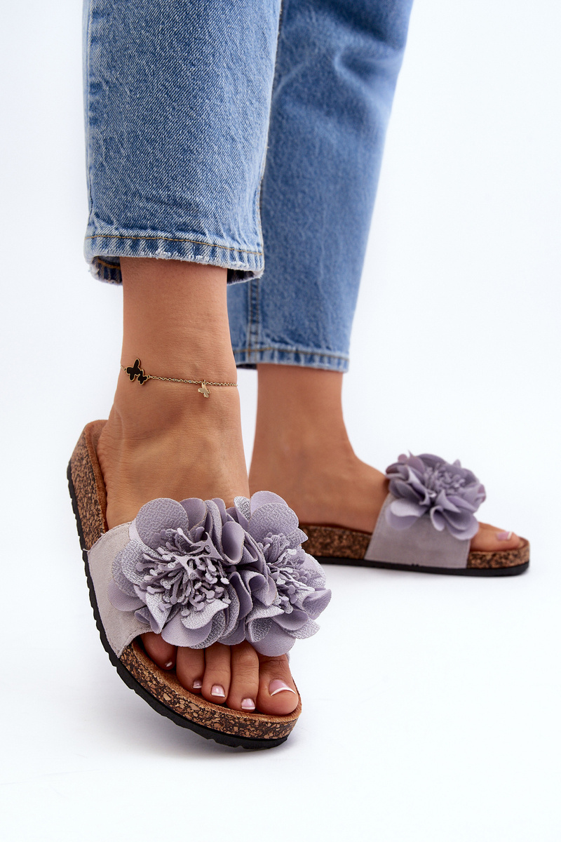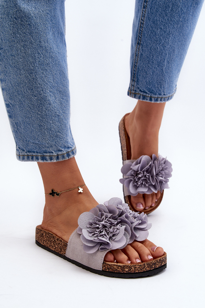 Women's Grey Flower Slippers Lulania