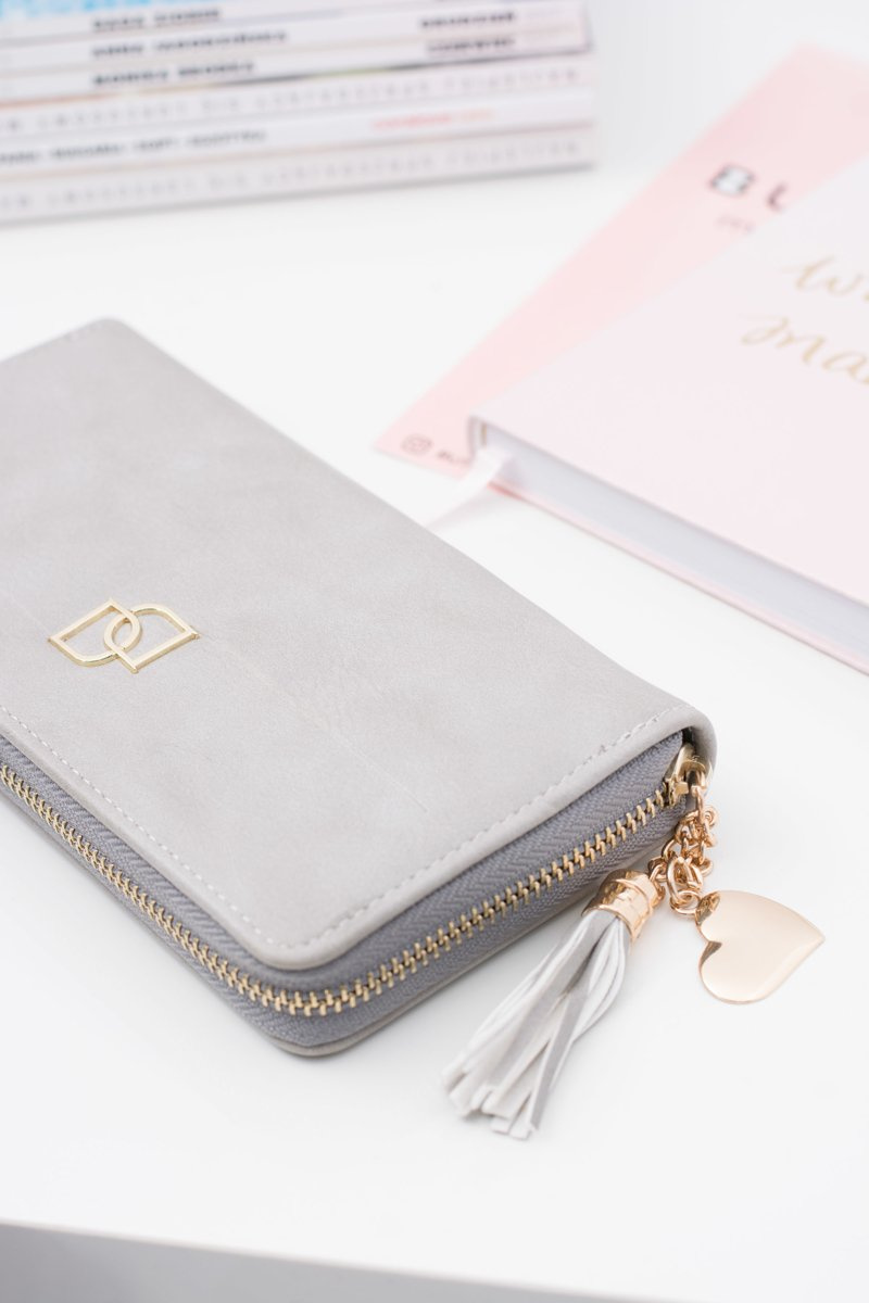 Women's Grey Large Wallet with Tassel Keyring