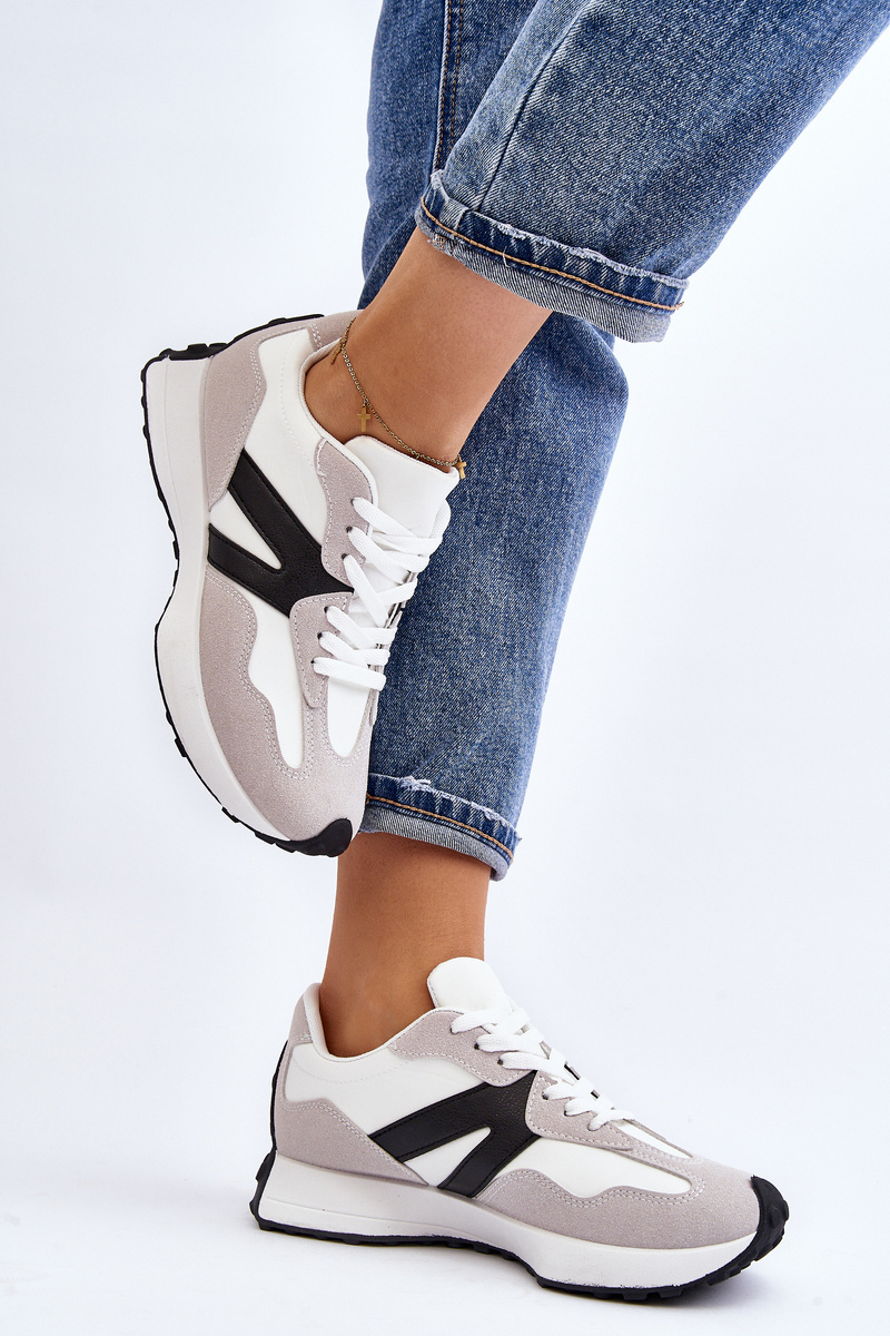 Women's sports shoes made from a combination of eco leather and fabric. Set on a rubber sole. Classically laced model. Soft, removable insole will provide comfort during use. Perfect for training, walking or everyday wear! When choosing a size, please refer to the size chart.