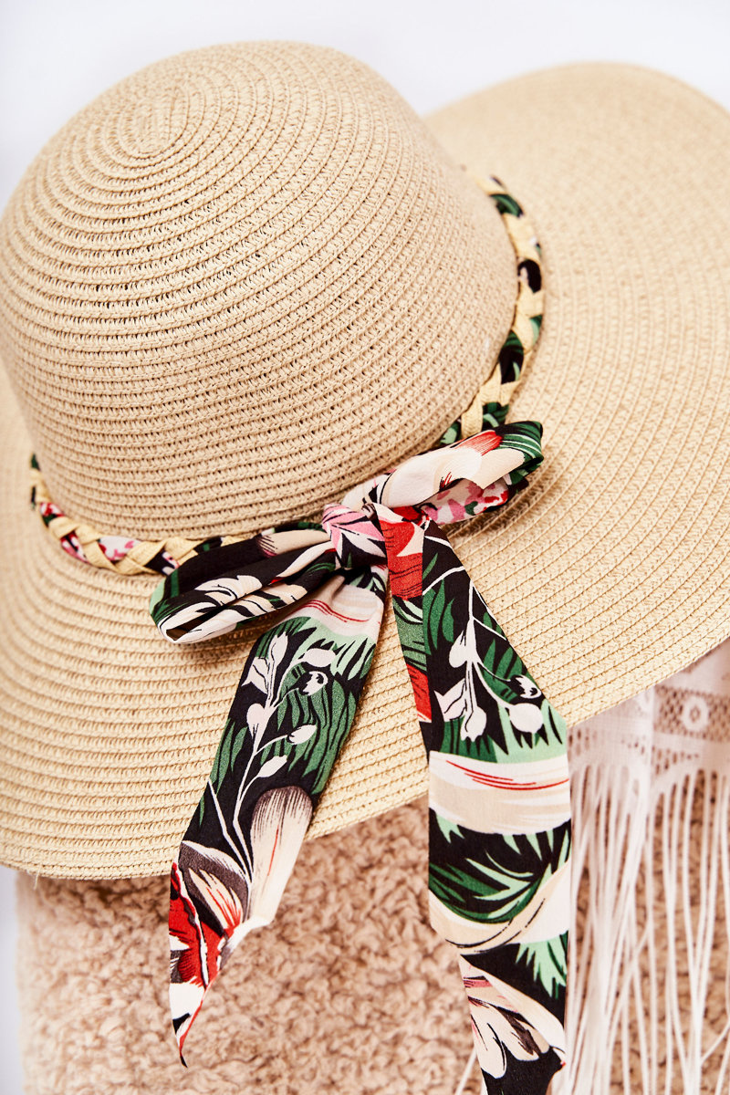 Women's hat with a beautiful belt, which has a colorful bow with a flower motif. The product is made of 100% paper. It has a string that allows adjustment and adjustment to the head circumference. The brim of the hat is quite wide. You can use the hat during holidays on hot days. Be sure to check out our entire collection of hats!