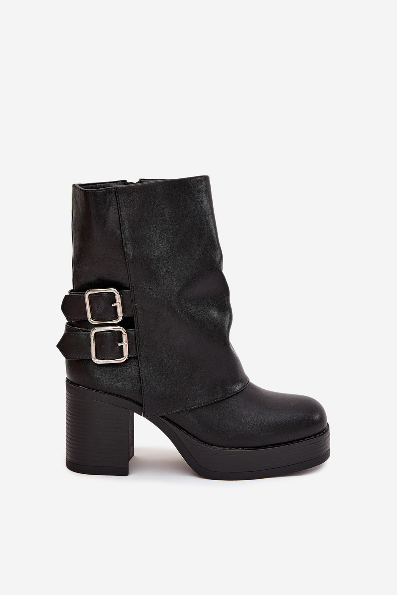 Women's Heeled Ankle Boots With Buckles Black Marena