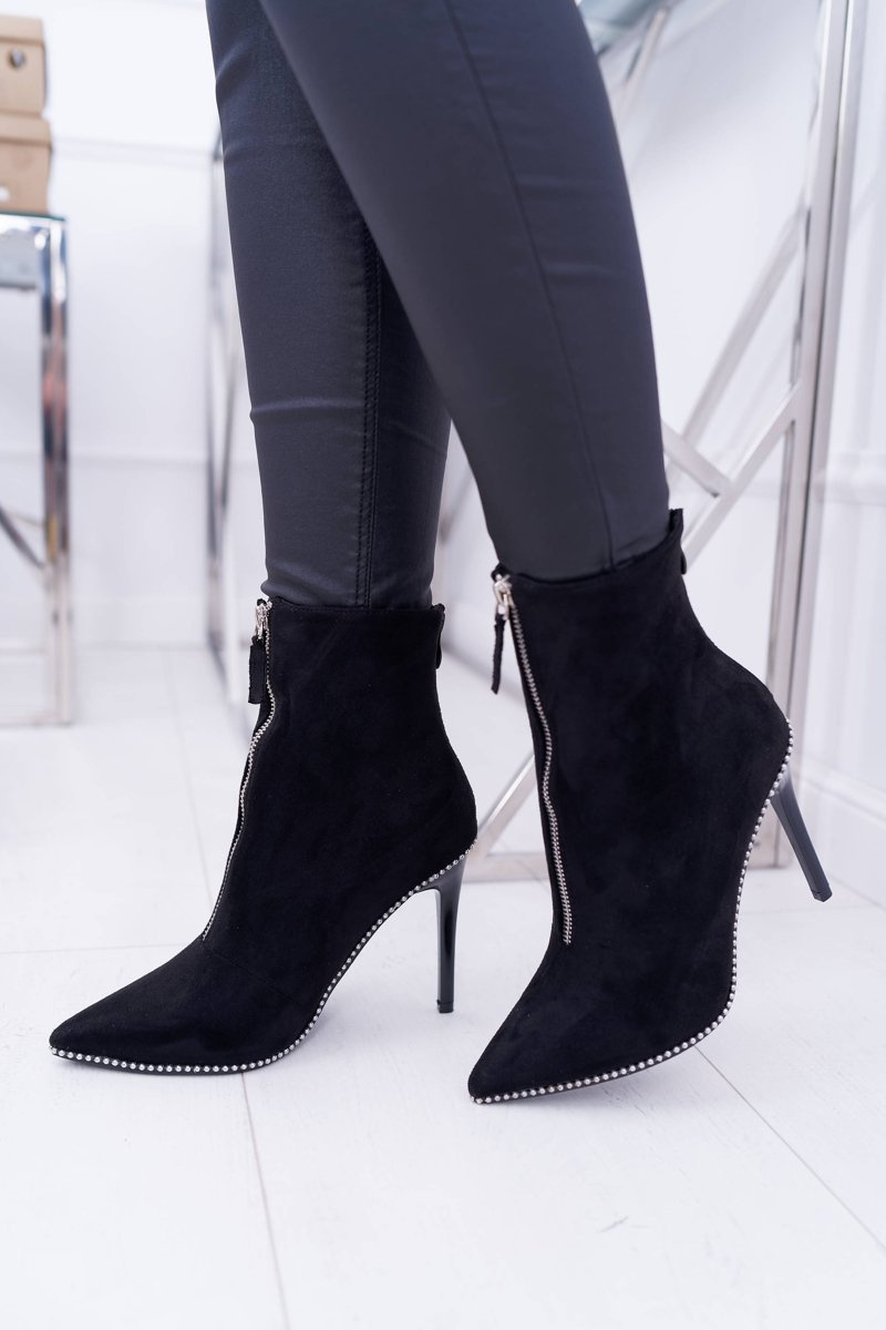 Boots have become an indispensable part of autumn and winter styling. One of this season's trends will be these gorgeous stiletto boots. Simple putting on will be facilitated by a zipper sewn on the back. The second one on the front is a great addition but also unzips. The pointed toe will slenderize your legs which, combined with the lacquered heel, is very sexy. Boots that perfectly fit into the upcoming trends. Check out the entire collection of boots!