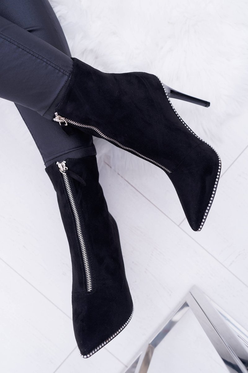 Women's Heeled Boots Lu Boo Two Zipper Suede Black Suzy