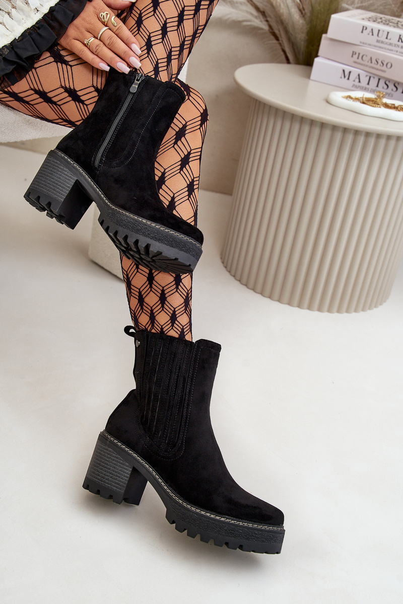 Women's Heeled Boots Made Of Eco Suede Insulated Black Nevitas