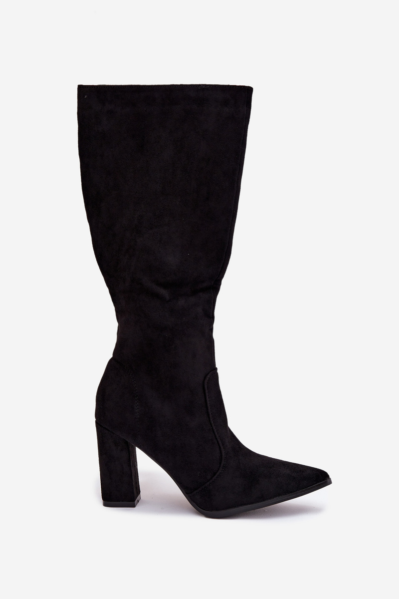Women's boots made of eco suede are an elegant model perfect for colder days. Set on a stable block heel, they accentuate the silhouette and add a stylish character. Fastened with a zipper, they provide easy wear and a good fit to the leg. The pointed toes give a feminine, slimming effect. The interior, insulated with foam covered with fabric, guarantees comfort and warmth during wear. A great choice for autumn and winter styles. Please refer to the size chart when choosing your size. When choosing a size, please refer to the size chart.