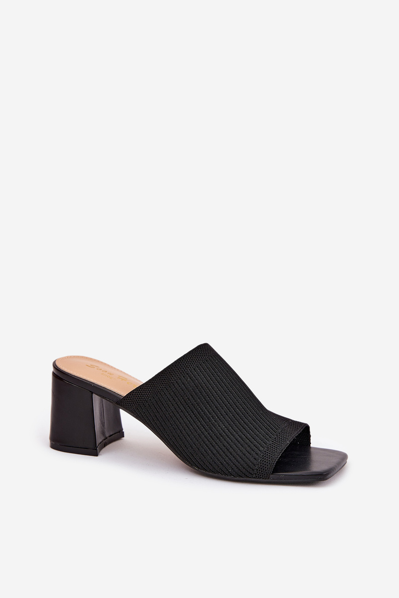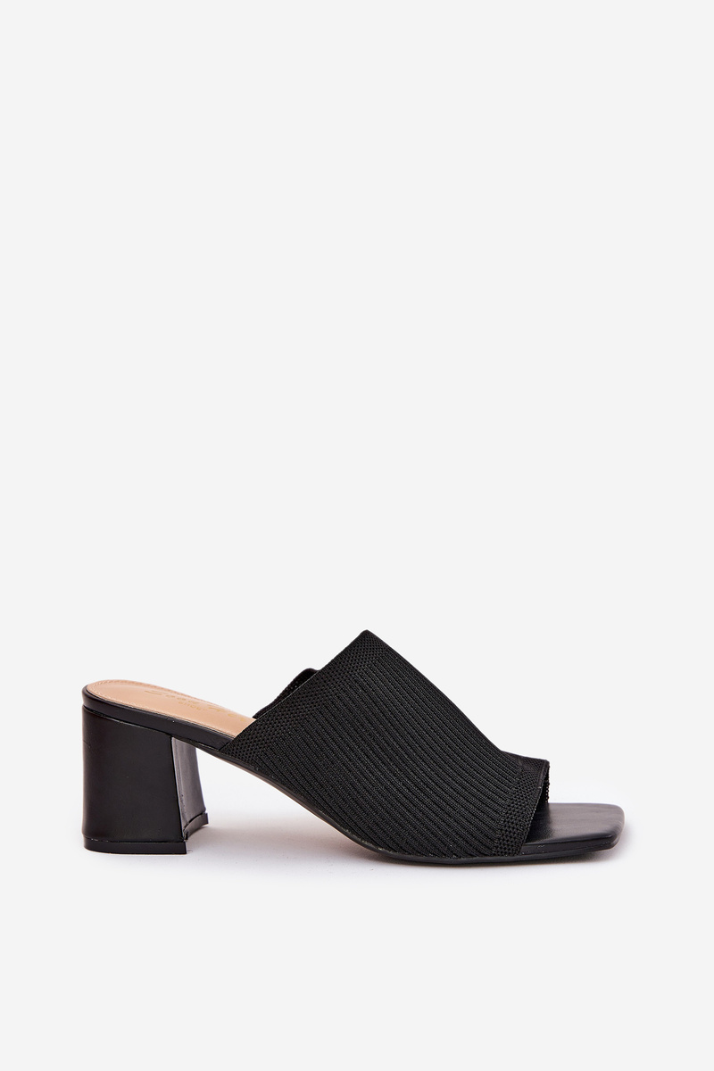 Ladies' slippers made of textile material. Set on a block heel. Thanks to the soft insole, they will be a perfect choice for summer walks or various occasions. Their fashionable look makes them great for different styles. You must have them in your summer wardrobe! When choosing a size, please refer to the size chart.