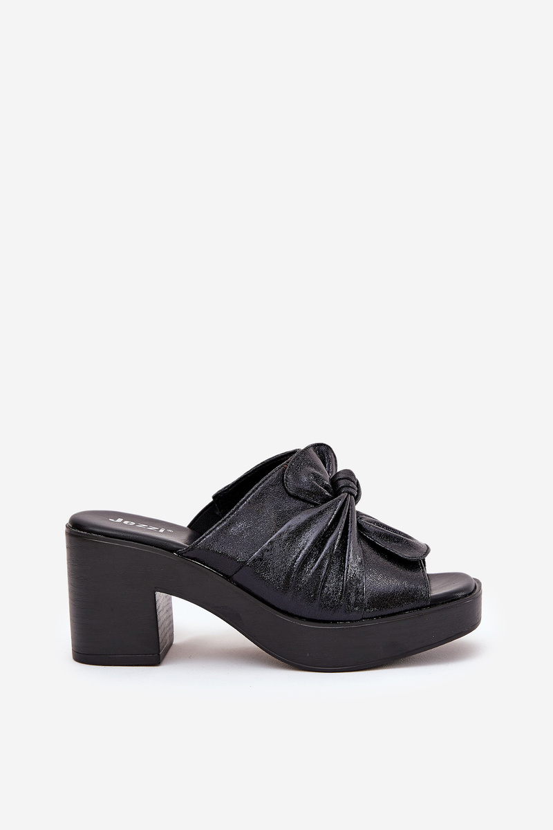 Women's sandals by Jezzi, made from ecological leather, offer elegance combined with comfort. They feature a chunky block heel. The front of the sandals is adorned with tied material. This model is a great choice for women looking for a combination of feminine style and modern appearance. Perfect for both everyday styling and special occasions. When choosing a size, please refer to the size chart.