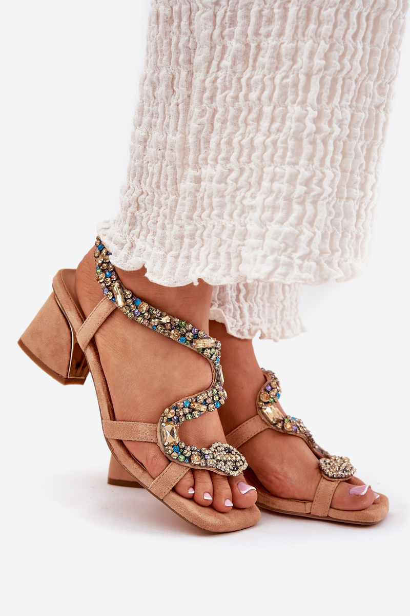 Womens Heeled Sandals With Crystals Artiker 56C1377 Beige