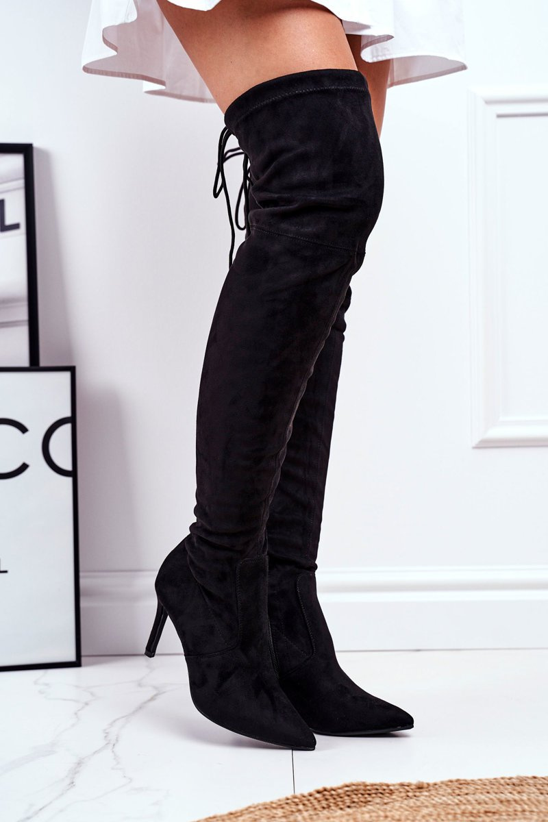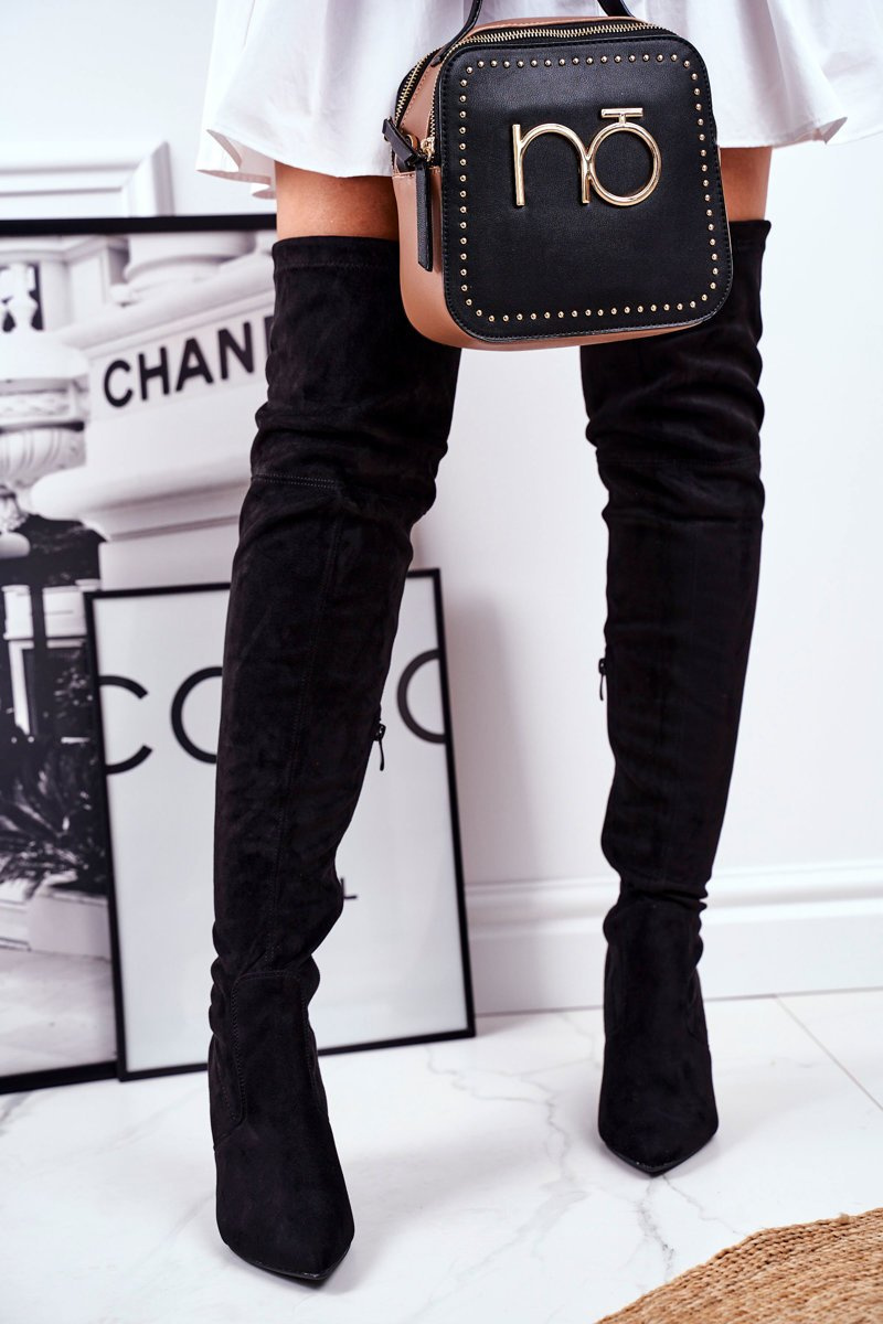 Women's High Boots Suede Black Huanto