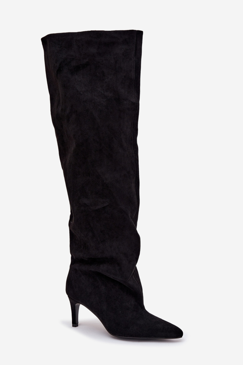 Women's knee-high boots are an elegant and stylish choice for the fall-winter season. Slip-on and set on a slim heel, they not only add lightness to the silhouette but also subtly elongate the legs, emphasizing feminine shapes. Pointed toes introduce a refined accent, and high-quality material ensures durability and comfort. These boots are perfect for pairing with elegant dresses, skirts, or more casual, fashionable ensembles, becoming a striking addition to any winter outfit. Please refer to the size chart when selecting your size. When choosing a size, please refer to the size chart.