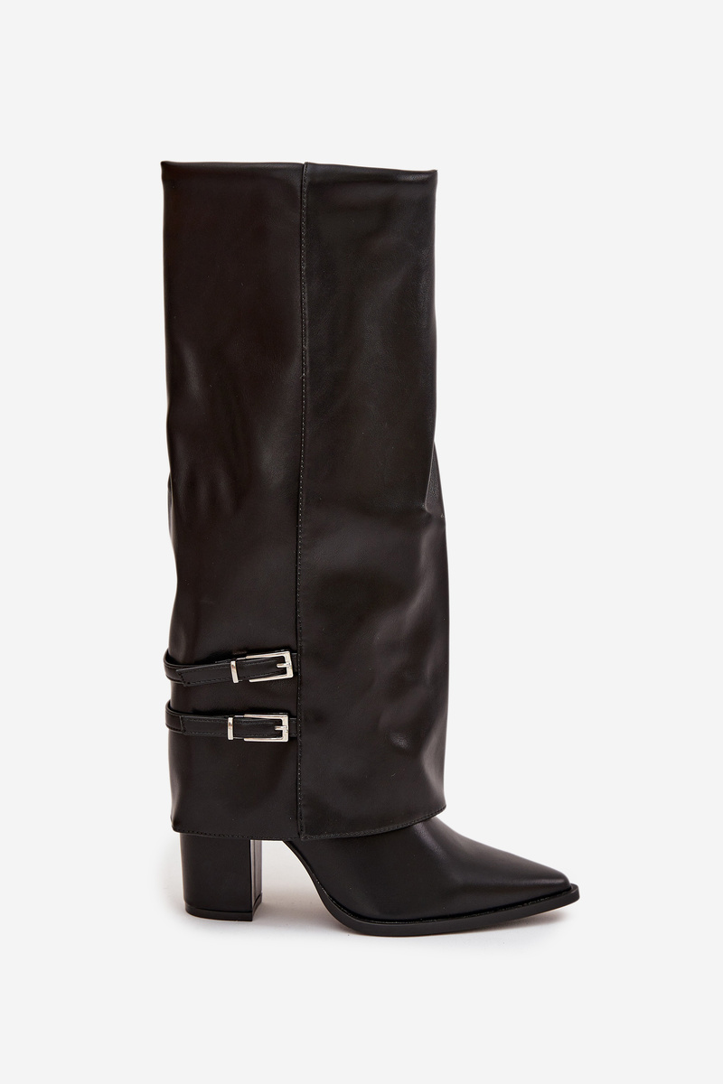 Women's High Heeled Boots with Turned-Up Shaft and Buckles Jessae Black