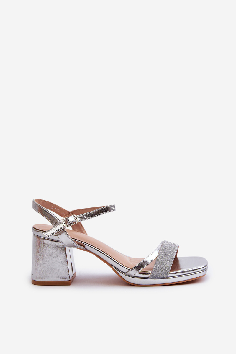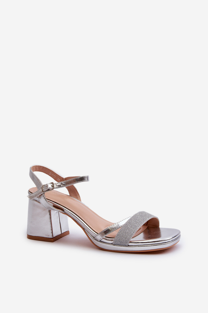 Women's High-Heeled Sandals with Shiny Silver Strap Tessata