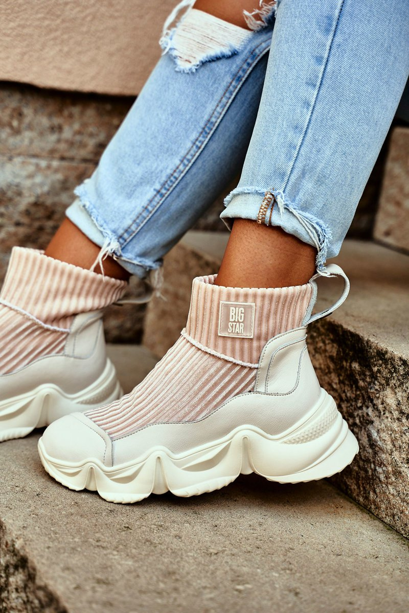 Just look at these beautiful shoes! Stand out from the crowd and choose the latest Big Star sneakers! This model is the perfect choice for colder days, because it has a high sole and a soft insulation inside the shoe. The footwear is externally made of the highest quality natural leather, but not only! Well, around the ankle and above the metatarsus, the manufacturer has used a velor material that will fit your foot like a sock. One should also mention the beautiful, transparent Big Star logo on the outside of the ankle. We cannot imagine any wardrobe without these shoes. This is an absolute must have this season! Do not hesitate, these beauties can sell out quickly. :) When choosing a size, please suggest the size chart available by hovering over or clicking on a given size.