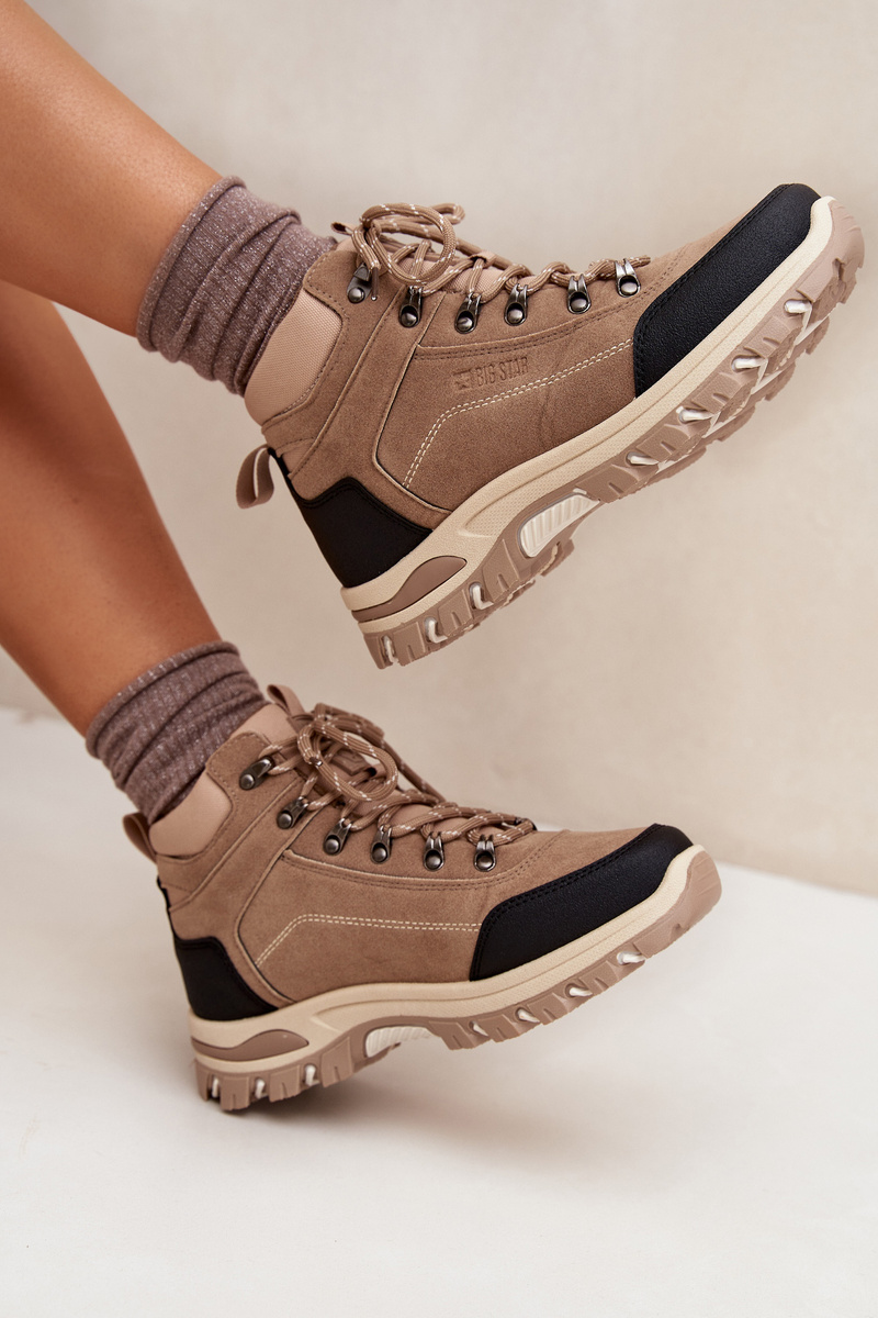 Women's trekking shoes from the Polish brand Big Star. Made of a combination of eco leather and textile material. This model has solid laces. Reinforced toe cap provides foot stabilization. Lined inside with fur. This model is a great choice for cooler days. Be sure to check out the other models of Big Star trekking shoes as well! When choosing a size, please refer to the size chart.