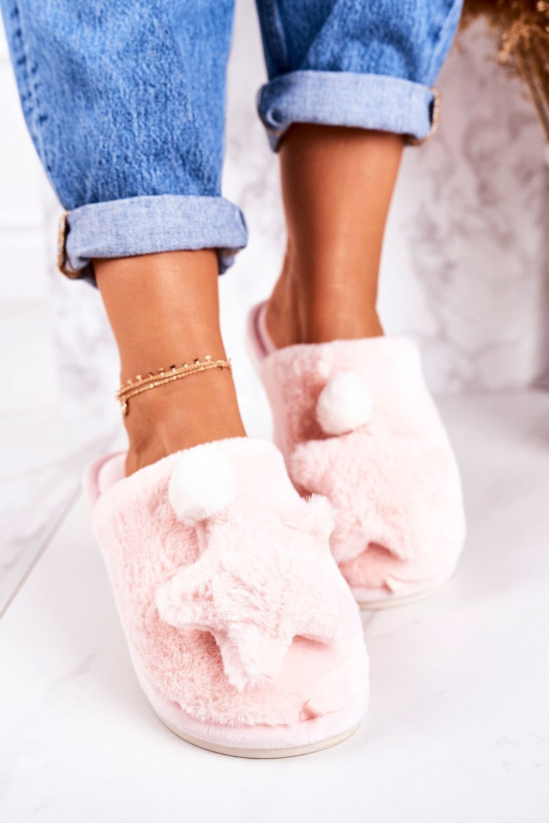 Women's Home Slippers With Fur And Star Light Pink Night-Night