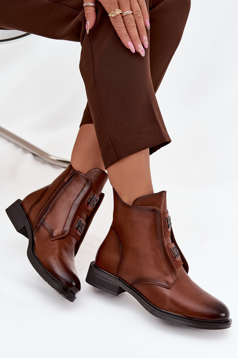 Women's insulated ankle boots with low heel with decorations brown Tavressa