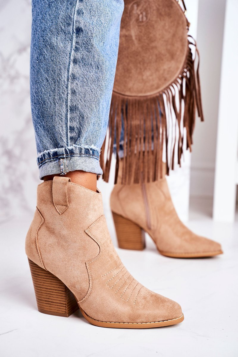 Women's Insulated Cowboy Boots On A Heel Beige Margaret