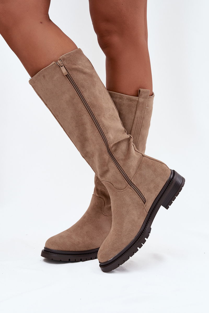 Women's insulated flat-heeled eco suede boots Dark beige Delyssa