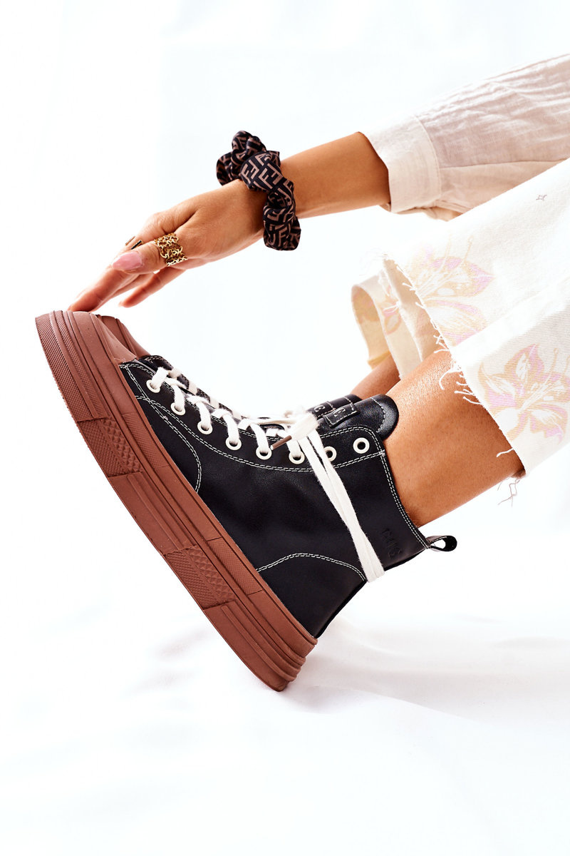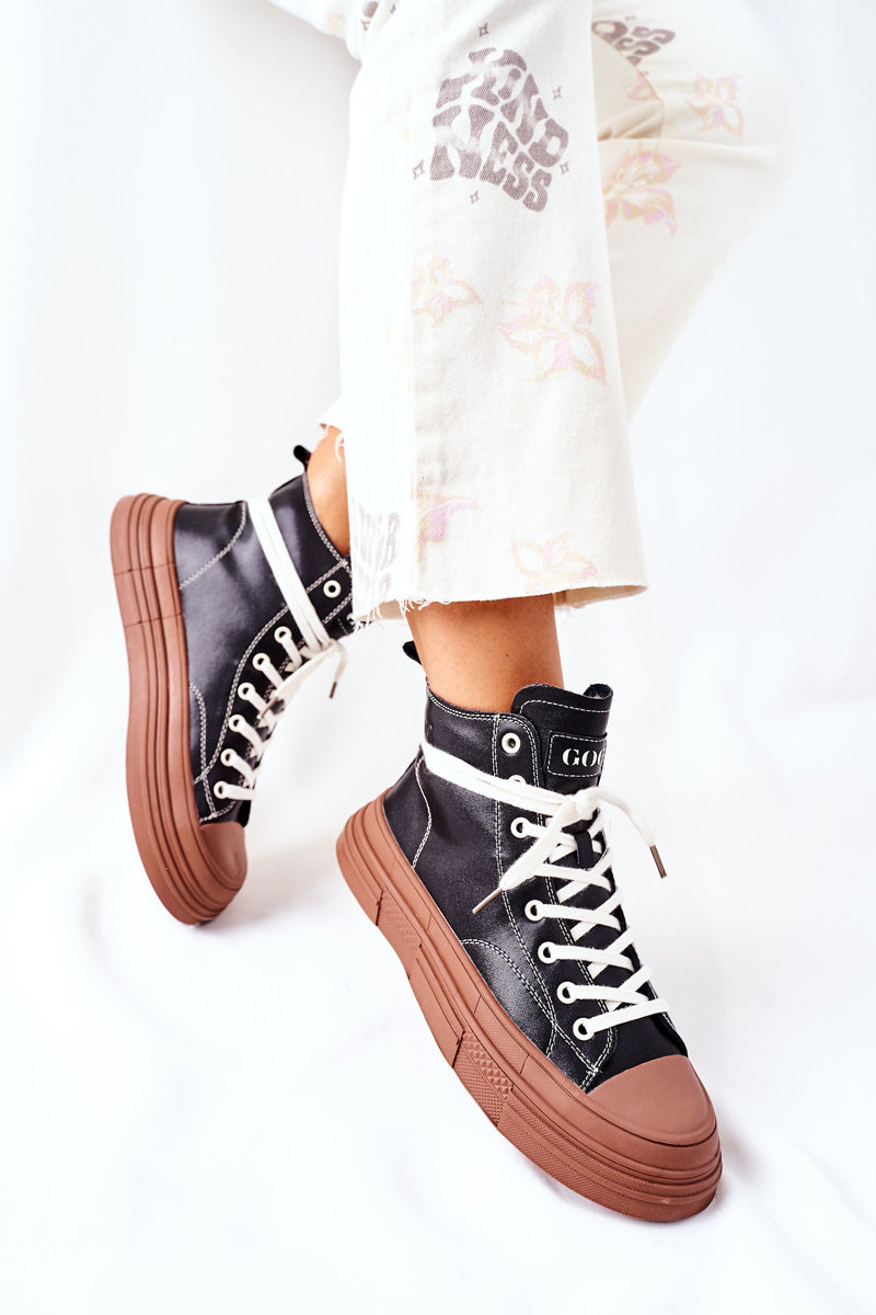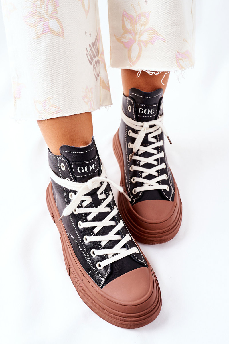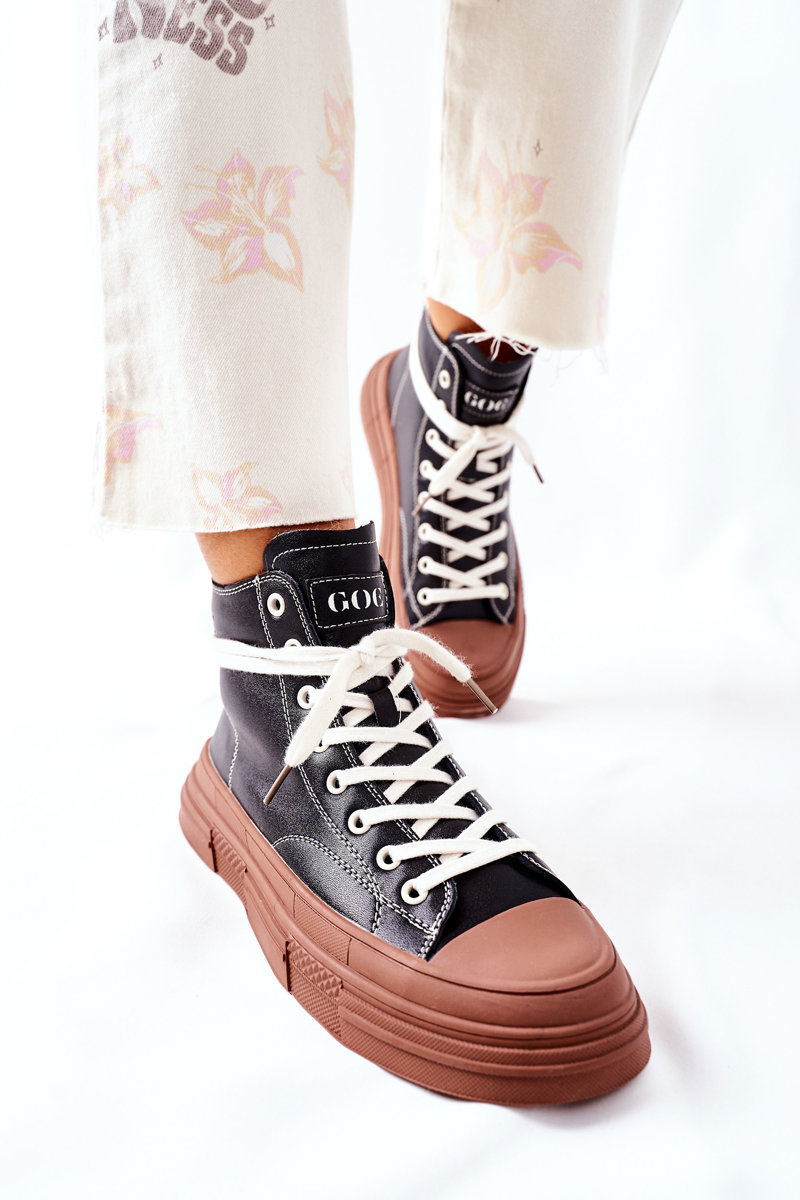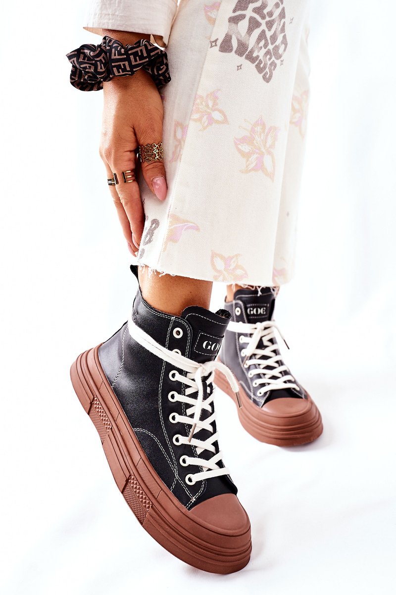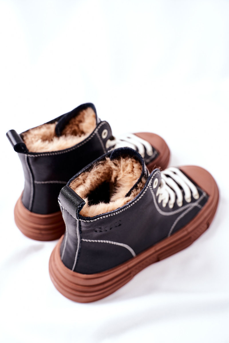 If you're looking for the perfect sneakers, GOE has something special! High sneakers, warmed inside with sheepskin, reaching down to the ankles. Classic lace-up model. The shoes have been entirely made of natural grain leather. Upper gently padded with thick, artificial fur. An additional advantage is a solid, anti-slip sole.