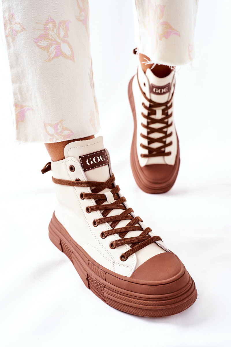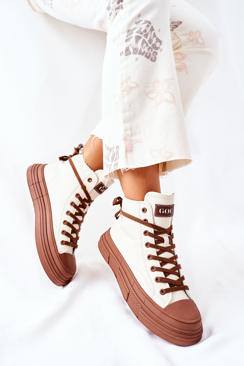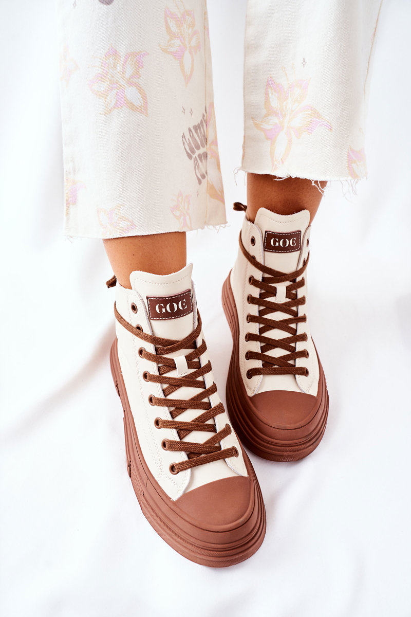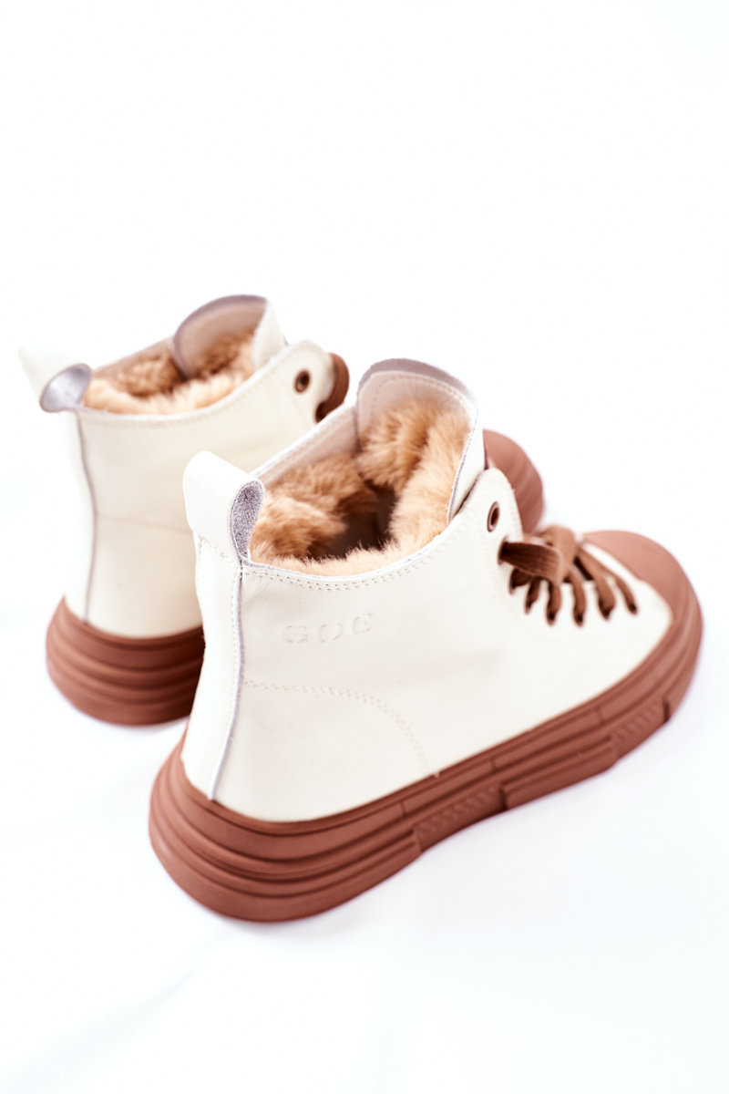 If you're looking for the perfect sneakers, GOE has something special! High sneakers, warmed inside with sheepskin, reaching down to the ankles. Classic lace-up model. The shoes have been entirely made of natural grain leather. Upper gently padded with thick, artificial fur. An additional advantage is a solid, anti-slip sole.