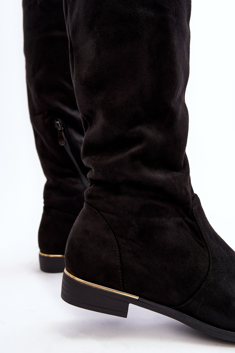 Women's Knee-High Boots On Flat Heel Black Bikka