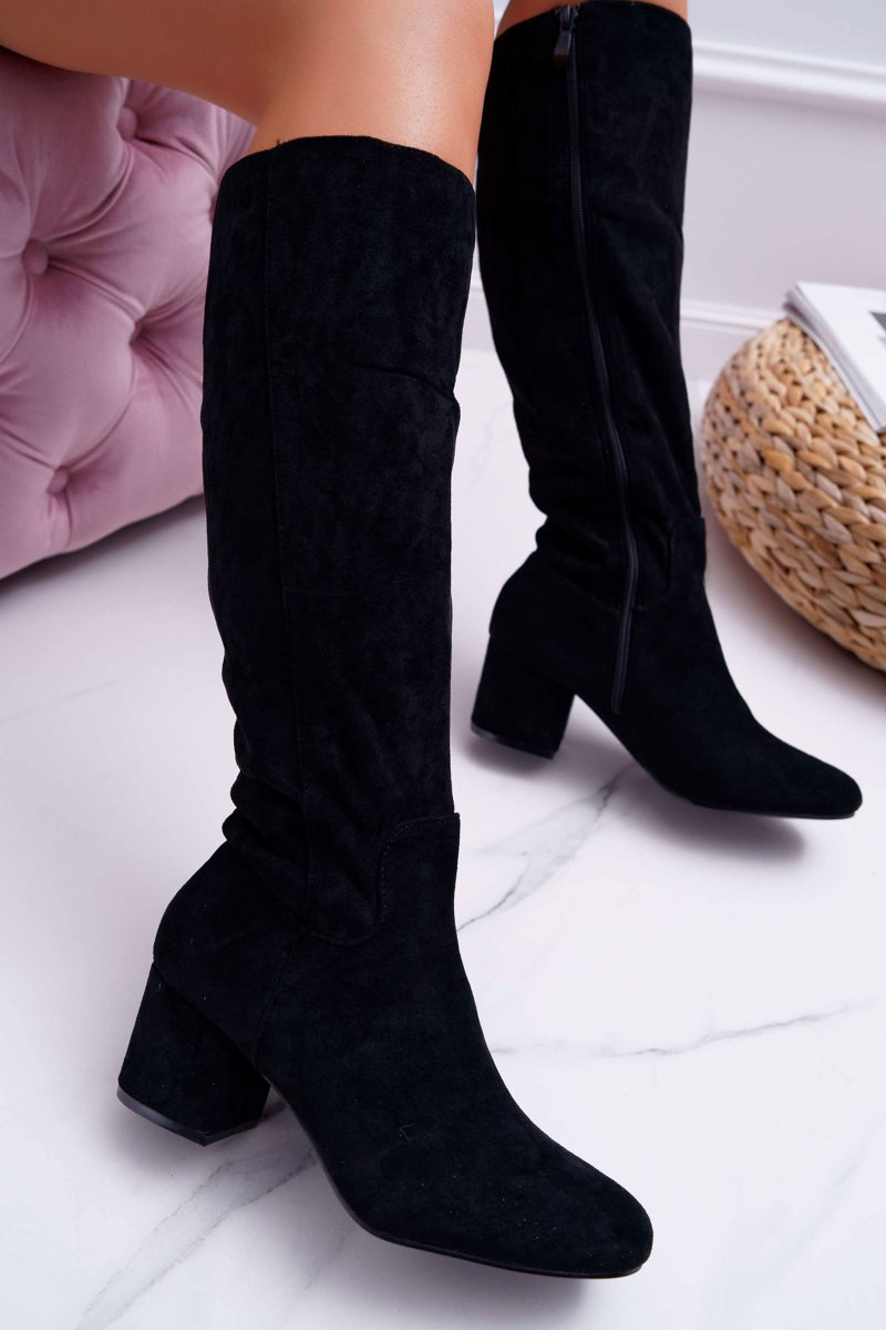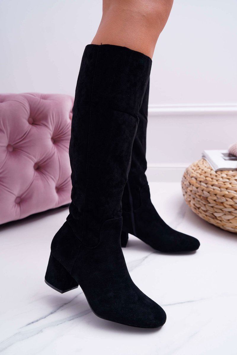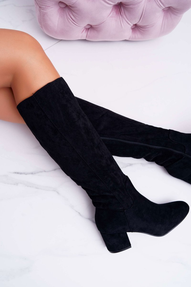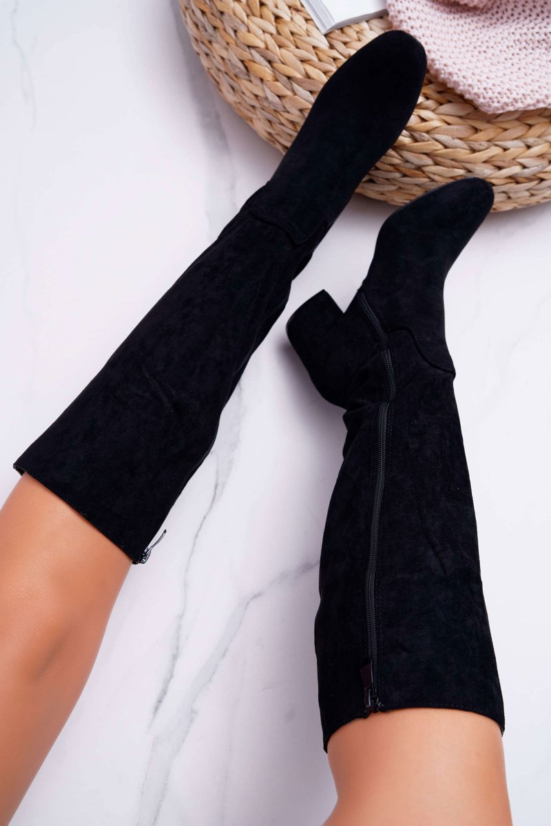 Classic black boots in one of the most fashionable cuts. Made of nice-to-touch eco-suede. The boots have a zipper on the inside for easy putting on. Stable, low post provides us with comfort and incredibly emphasizes our style! When choosing the size, please suggest the size chart.